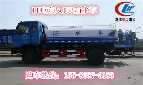 6、12-15吨东风153洒水车,蓝色前翻驾驶室,4500mm轴距,6档变速箱,发动机为康明斯185马力,10.00-20轮胎