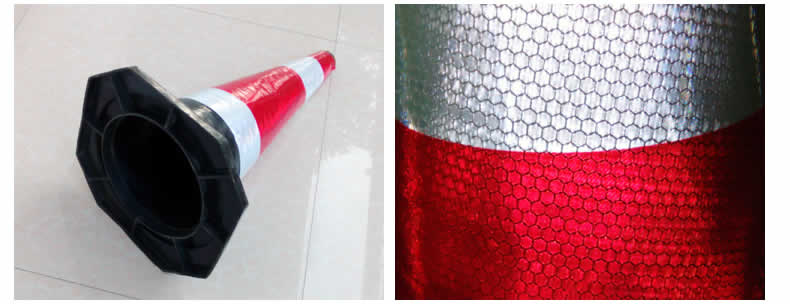 3、椎体套上红白相间的晶彩格反光锥套,具有很好的反光效果,不管是在白天还是夜晚,都有很好的反光效果,更好的警示驾驶员小心行驶,从而减免交通意外的发生;
