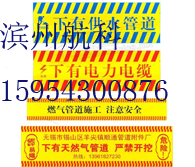 管道警示带介绍:警示标志带,广泛应用于各种直埋式燃气管道、输油管道、城市给排水管道、电力电缆、通讯光缆等关于国计民生的第五类运输体系及信息传输系统,特别对各种情况复杂的城市管网施工中、道路施工中、建筑建设施工中、田野中的直埋管线有着明显的防护警示作用,避免因意外损坏造成巨大的财产和经济损失,是各种直埋式管道、线缆安全防护的经济有效、简单易行的用品。