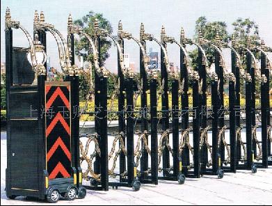 伸缩门主要由门体、驱动器、控制系统构成。门体采用优质不锈钢及铝合金专用型材制作,采用平行四边形原理铰接,伸缩灵活行程大。驱动器采用特种电机驱动,蜗杆蜗轮减速,并设有自动离合或手动离合器,自动离合停电时可自动启闭,手动离合停电时可手动启闭,控制系统有控制板,按钮开关,另可根据用户需求配备无线遥控装置。可配备滚动显示屏,显示500字的显示内容。还可配备智能红外线双探头防碰撞装置,遇人或异物20-30CM可自动返回运行,从而保障车辆及行人的安全。