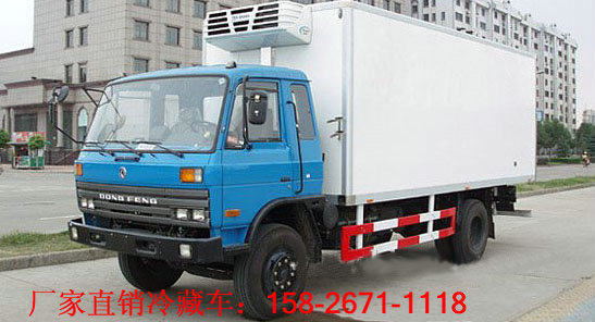 5.东风多利卡冷藏车(单排),货厢长度5.15米,发动机为朝柴120马力,带中冷增压,方向助力,7.50-16钢丝胎,5档变速箱,实际载荷最大为6吨. 保温材料采用无氟聚胺酯室外发泡切片式,箱板经压机高温、高压、抽真空一次成型。厢体下板厚各为100mm,前后板及侧板厚为80mm。