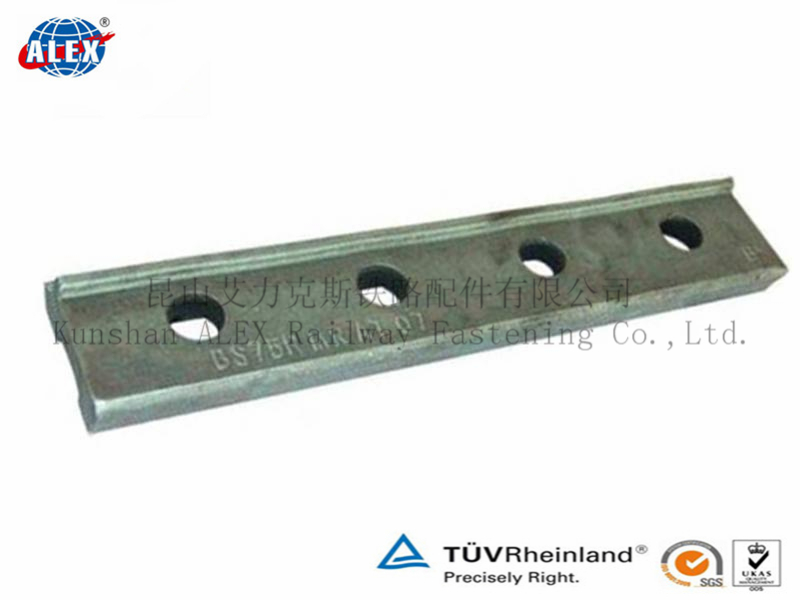 4、鱼尾板按材质区分有:球墨铸铁、Q235轧制、锻造等。鱼尾板主要使用中碳钢和高碳钢为原材料,我司主生产的鱼尾板型号为115RE,132RE,UIC60,UIC54,BS80A,BS90A,BS100A,90/91LB等。另外也生产机加工的复合鱼尾板以及铸铁或者铸钢鱼尾板。