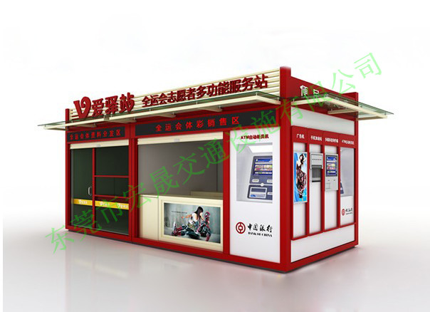 10、加配装置:工作台、空调架、排气扇、、漏电开关、抽屉;宏晟公司(报刊亭厂家)是一家集研发,生产,销售和服务为一体的智能城市便民设施高新技术企业,工厂地址:东莞市寮步镇凫溪村工业区第二排(电话13713224560/qq2368078965) 欢迎各界人士来厂考察指导工作"