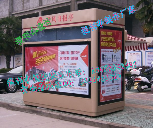 报刊亭生产厂家_制作报刊亭价格_报刊亭供应商136-5254-2382贺先生QQ;332-146-3317有多种颜色、大小规格和不同材料可根据客户要求订制,我司制作的所有产品免费维修一年,可安装或派人现场指导安装。