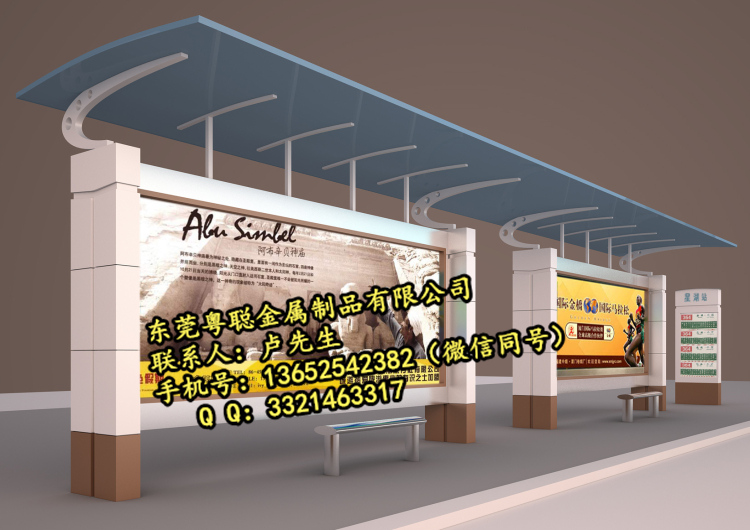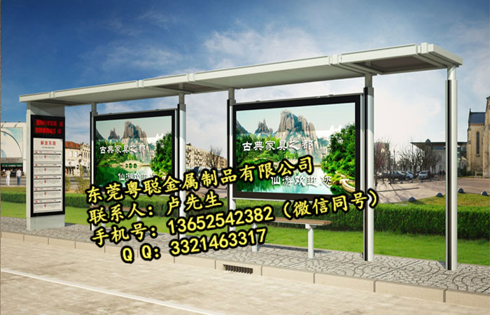 城市公交的日益发达,候车亭已发展成为城市一个不可或缺的重要组成部分,设计精美的候车亭也成为了城市一道美丽的风景。以此候车亭建设对制作厂家生产技术,设计风格的要求,陕西候车亭厂家定做直销,东莞市粤聪金属制品有限公司,品牌知名度要求非常高,欢迎各位新老顾客前来参观选购!