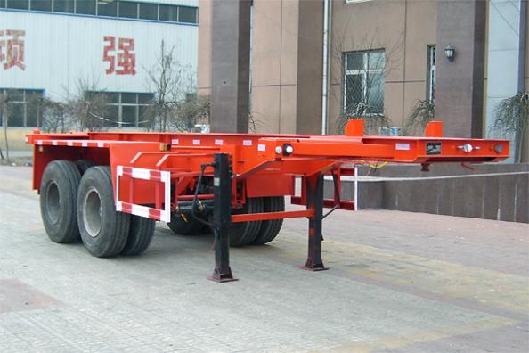 集装箱运输骨架半挂车是集装箱运输半挂车车架的一种还有一种是平板式。