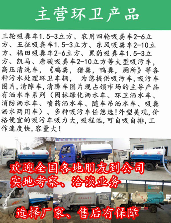公司吸粪车价格一般小型吸粪车的价格在14000-32000元左右、东风吸粪车一般在82500--220000元左右、福田吸粪车一般在78500--160000元左右等等..因配置不同所以价格也不同我们将会为您提供全方位的解决方案。我们将以最优质的合理的价格为您提供最优质的商品和最热情周到的服务;吸粪车产品性能:配备大功率真空吸粪泵(油封旋片式真空泵),垂直吸程≥7m,水平吸程≥50m,配有防溢装置