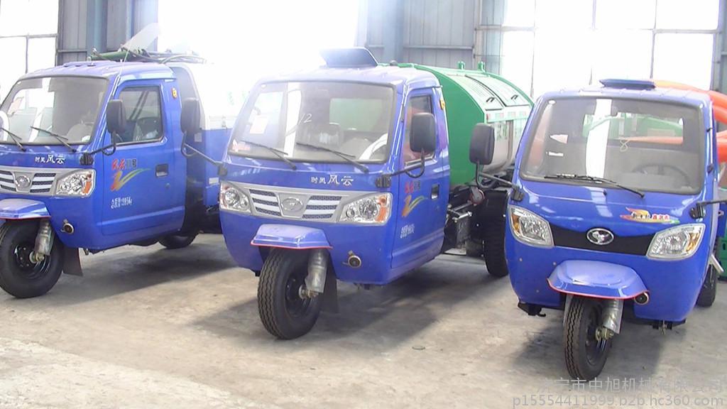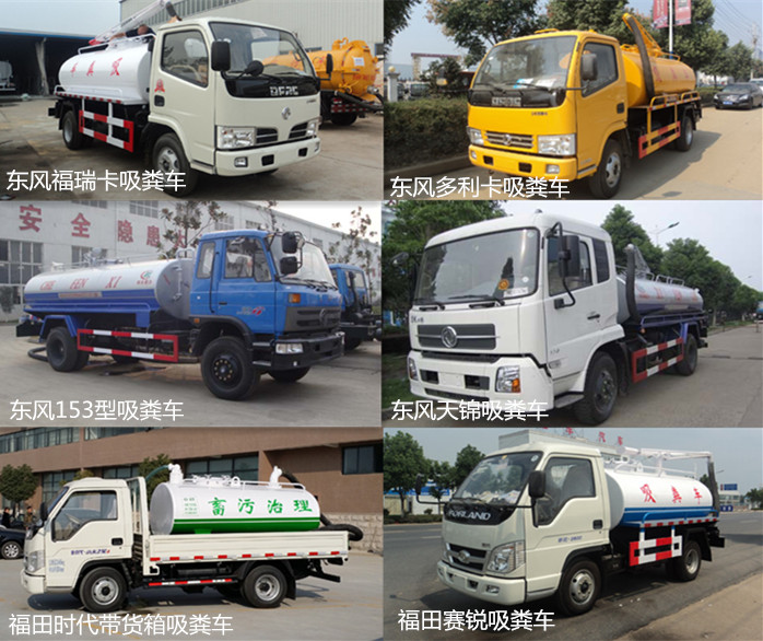 (1)小三轮吸粪车:容积1.5-3方(可选做),发动机(18马力、20马力、24马力、28马力)轮胎650-16,750-16,油刹车,高低速、可选择全封闭(驾驶室)和半封闭。吸粪管管长6米(可加长),优点:经济实惠,便于停放,灵活实用,可适用于农村作业,小型作业。