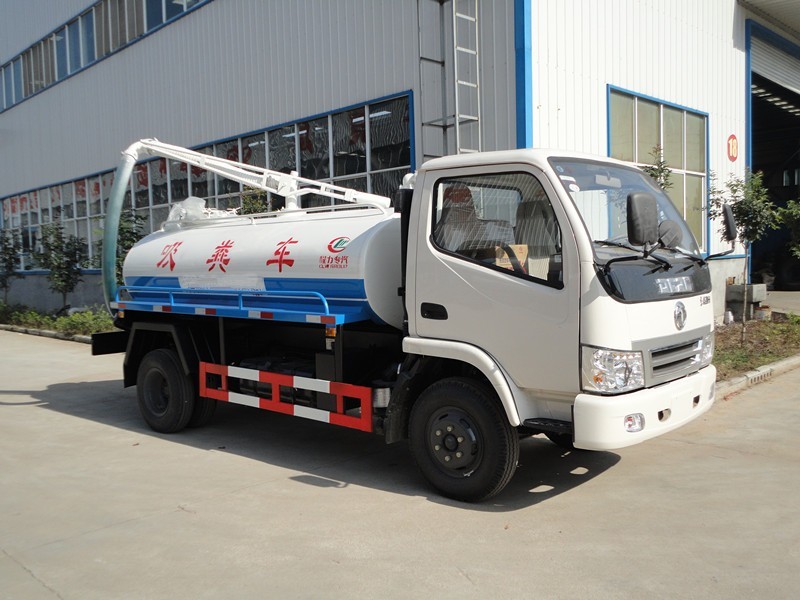 (3)东风多利卡吸污车/吸粪车朝柴120马力,金属平头宽体驾驶室,2.4吨前桥,4.2吨后桥,循环球式转向器,轮胎规格:8.25-16,罐体容积6立方米,单级旋片油封真空泵,垂直吸程≥8米,