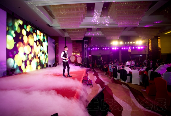 在婚礼上需要有一个泡泡机,在新人告白、倒香槟及切蛋糕的时候制作浪漫气氛.如果新人想要更好的效果,还可以选择地烟机、干冰机等.