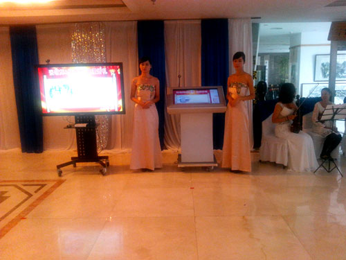 2、桌位安排:该功能把客户宴会桌位提前输入签到系统,在签到时,嘉宾在签到机上输入姓和名的首字母签到,就能找到自已的位置。