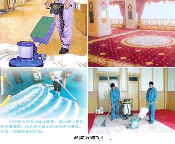 地毯总给人大宏鹰、华贵、呈现气派的感觉。地毯的质地、图案、花色间接反映了使用者的文化底蕴、审美层次和欣赏品味。但被污染弄脏的地毯,好象身上的衣服被弄脏的一样,让人十分沮丧。如何将厚重的地毯清洗保养得洁净、清新、松软而富于弹性呢?这就要求我们要有品质良好的专用清洁药剂、先进高效的清洗机器设备、专业有经验的作业工人和一份长期持久、可实现的清洁保养计划。我们同样不仅拥有这些基本必要条件,还拥有许多对付各种特殊污迹污渍的技术和窍门,相信定能祝您一臂之力。