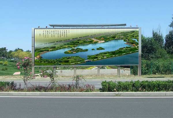 三面翻是现代广告中新兴的,通过电机驱动使三棱柱不断转动形成的三幅画面,表现形式它由一组特制三棱柱铝型材并排定位构成的,独有的动感广告展现和三倍增值空间。三面翻广告牌诞生于90年代初,它不仅富有韵律的动态效果以及三倍的表现空间,更有较低的运行成本和高效免维护的特点。三面翻广告牌受广告主青睐主要凭两点:一是其动态的传播方式,二是它能最简洁地完成一个故事情节的铺陈。